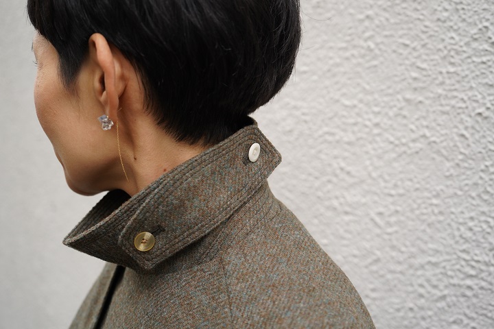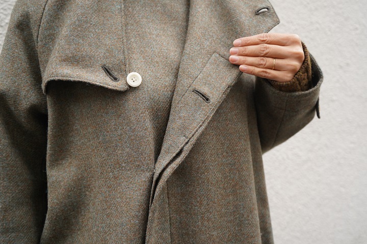 Wブレストですが、ボタンが見えないことでステンカラーコート