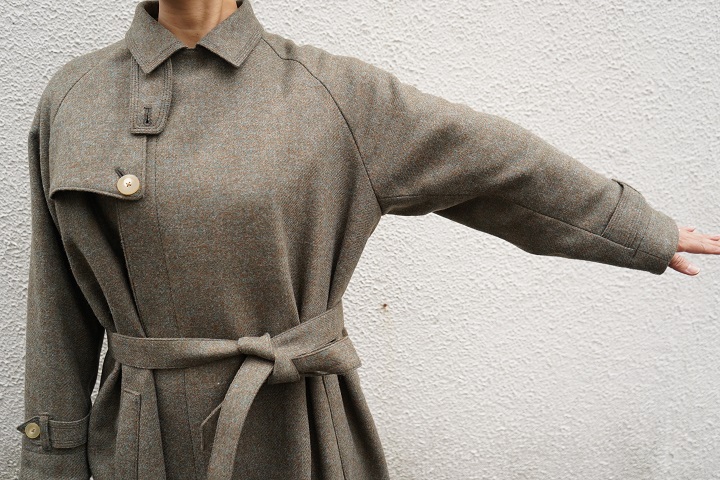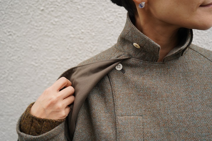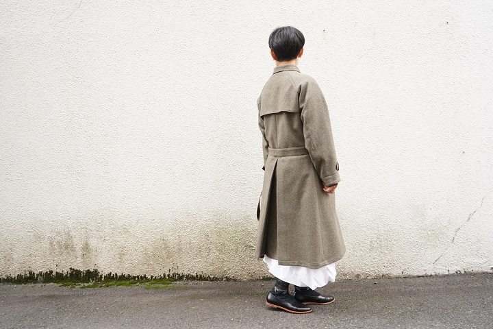 衿の返りがないので、トレンチコートのようには見えませんが、