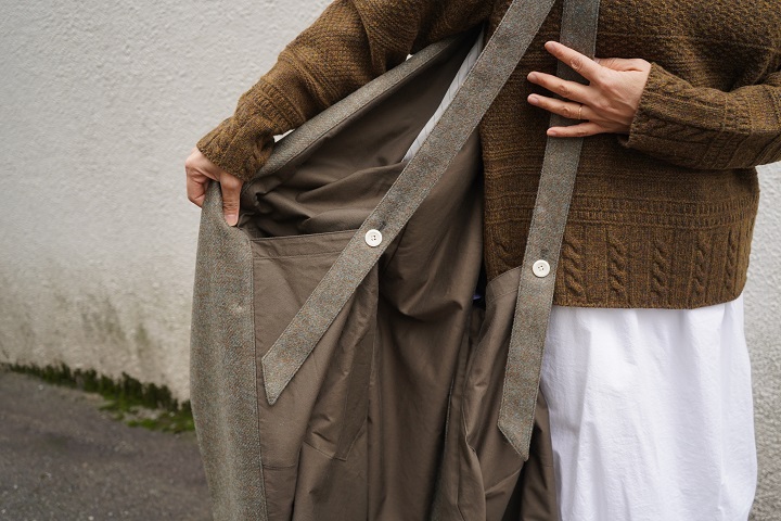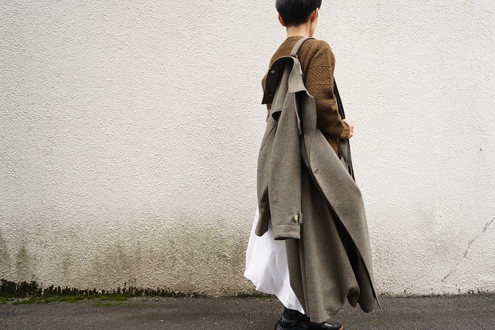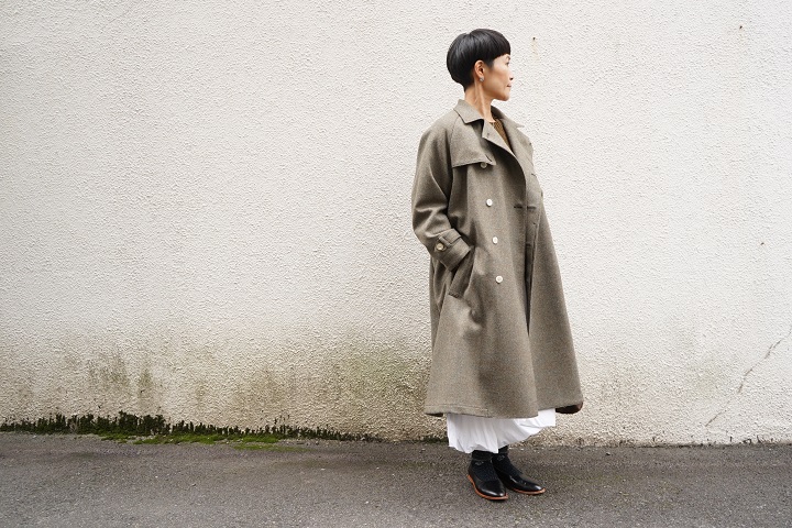 下にもざっくりとしたセーターなど着ていただけるコートです。