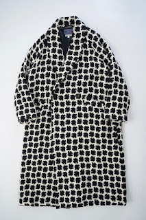 甘撚りのロービング糸を用いたオリジナル柄のWOOLコートは、