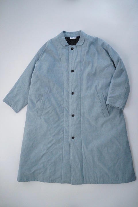 冬のコートでは珍しい、先染めのブルーシャンブレー。