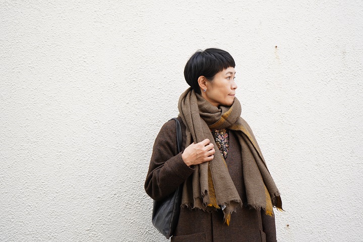 自身のコレクションを説明するときのデザイナー玉井さんは、