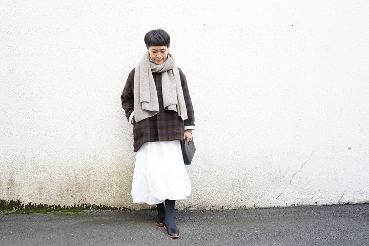 大判のショールなどを上手に使い、真冬もたくさん着てほしい。