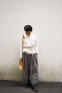 白のムールベストに合わせたパンツは、同じSUSURIのもの。
