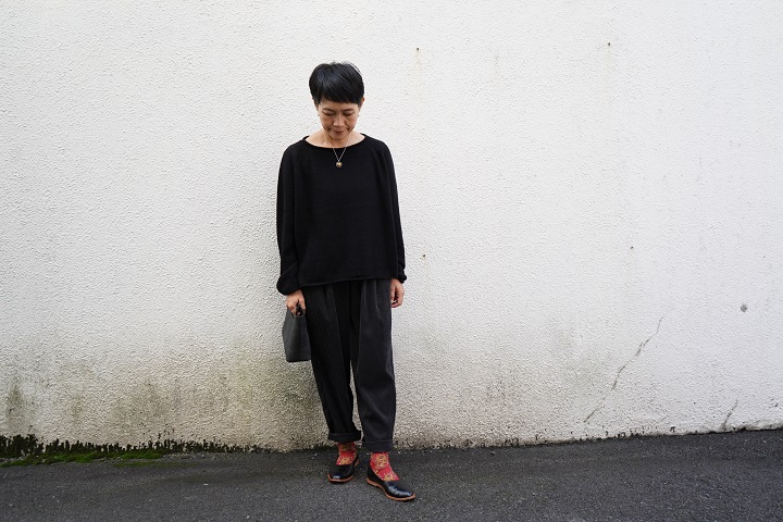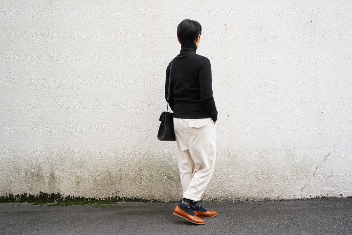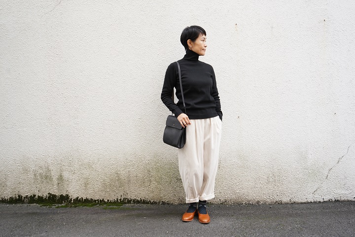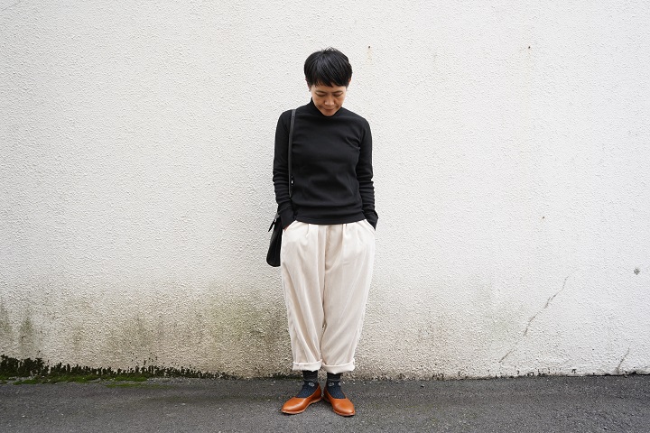 トップスはBLUE BLUE JAPANの定番コットンタートル。
