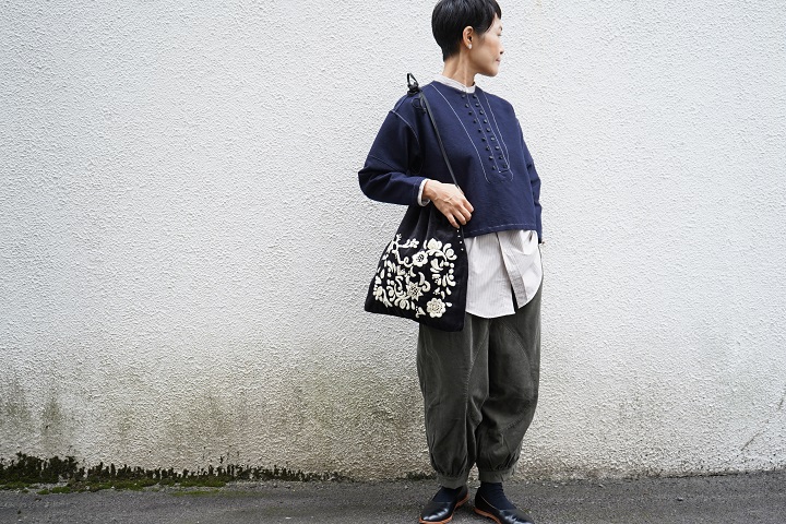 こちらはSUSURIさんの変形ブラウスを重ねて。
