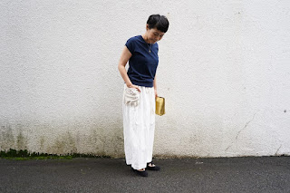 ゴールドのバッグもいい感じに調和します。