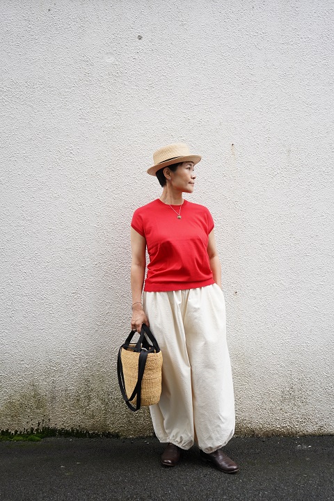 レッドはふんわりパンツのキナリに。