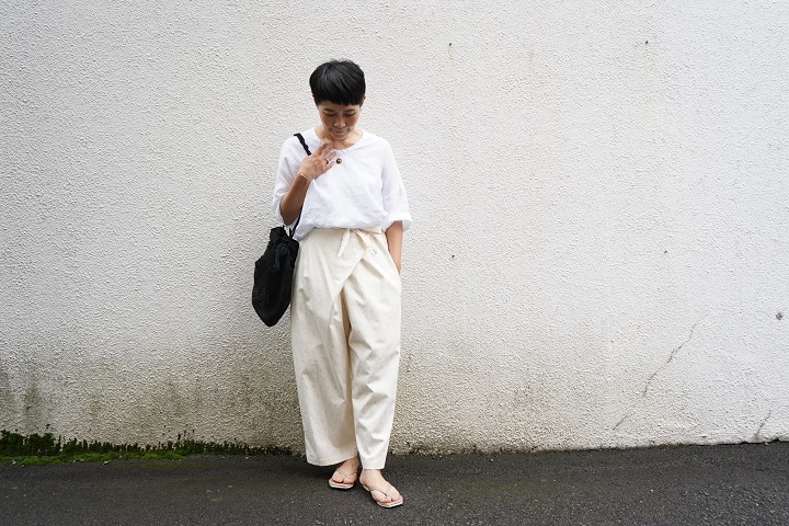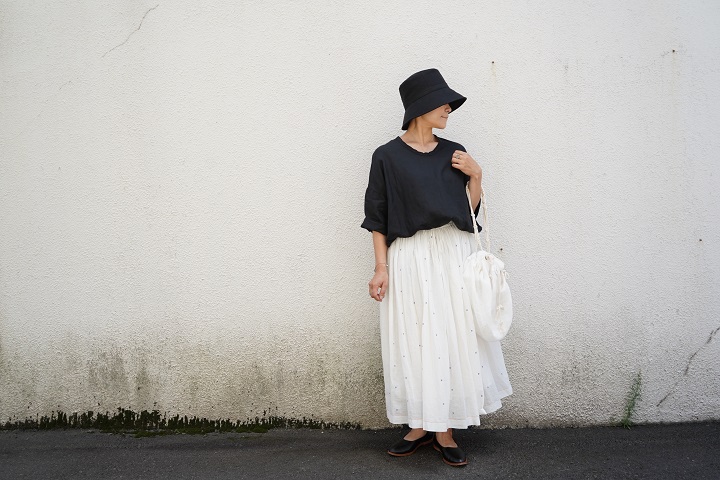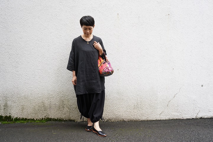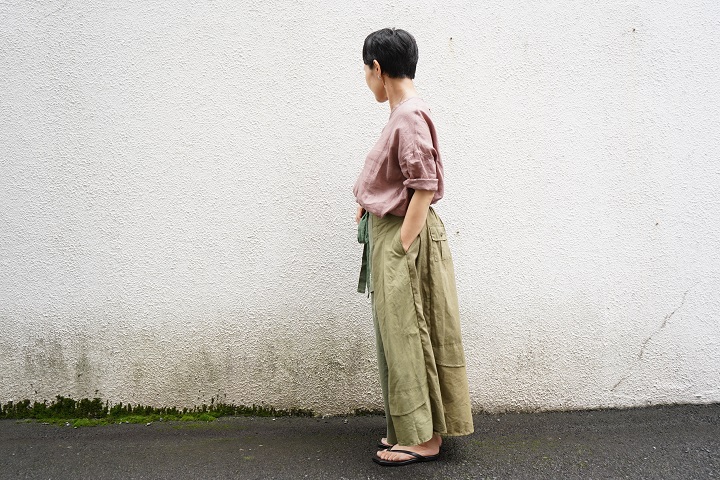 置いてみるとTシャツのようですが、着てみたらブラウスです。