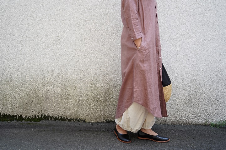 少し腰の強い薄手のリネンで、はじめは若干、カリカリとした