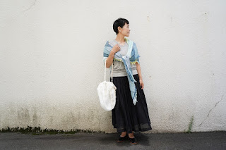 透け感のある羽織の下は、ノースリーブがかっこいい。
