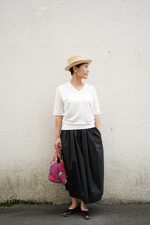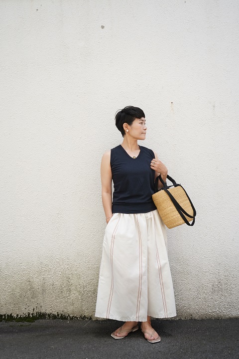 FIRMUMのトルファンコットンタンクトップを合わせて。