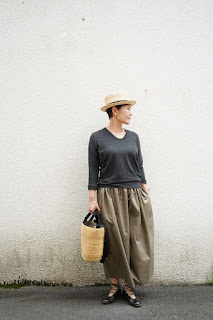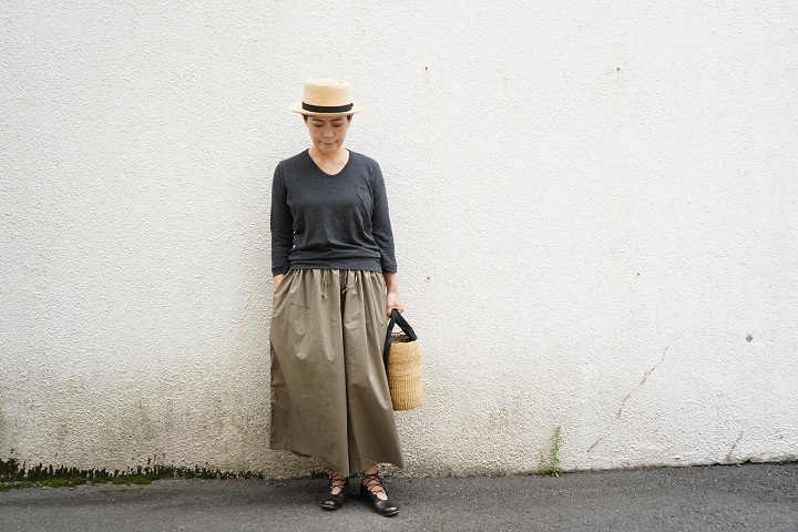 グレーは、FIRMUMのトルファンコットン8分袖に合わせて。