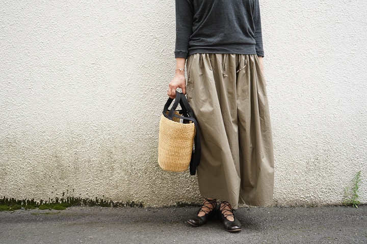 ボリュームのあるキュロットパンツですが、収まりはよく、