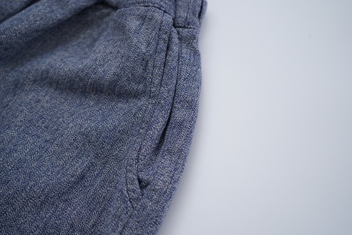 素材は、岡山のブランドらしいインディゴのヘリンボーン素材です。