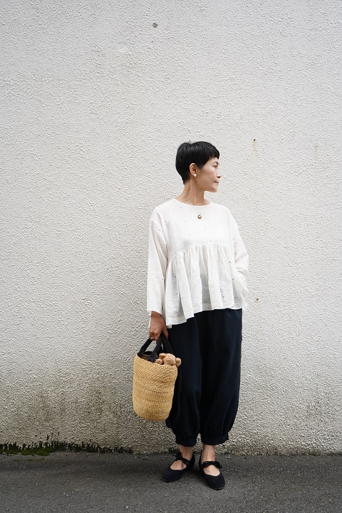 こちらは昨日のブラウスのご紹介の際に登場したスタイリングです。