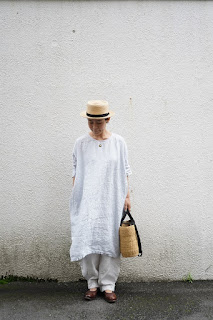 こちらは白のパンツで全体に明るく柔らかく。