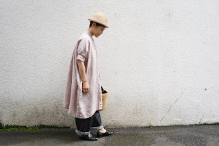 とろみのある先染めのリネン素材の羽織コート。