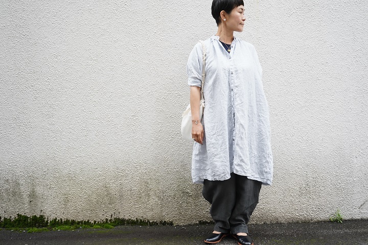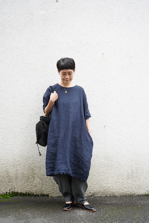 意外にも幅広いボトムスとの相性を感じられる被りのワンピース。