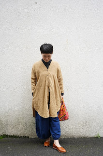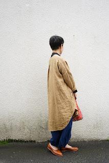 インナーにはmaison de soil のリネンの長袖刺繍シャツを着ています。