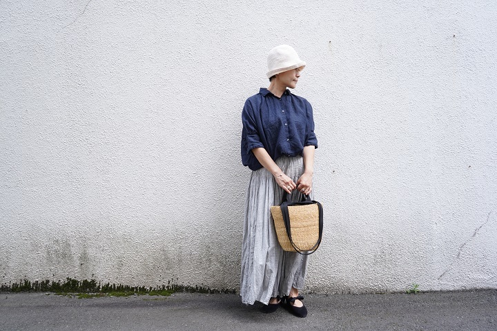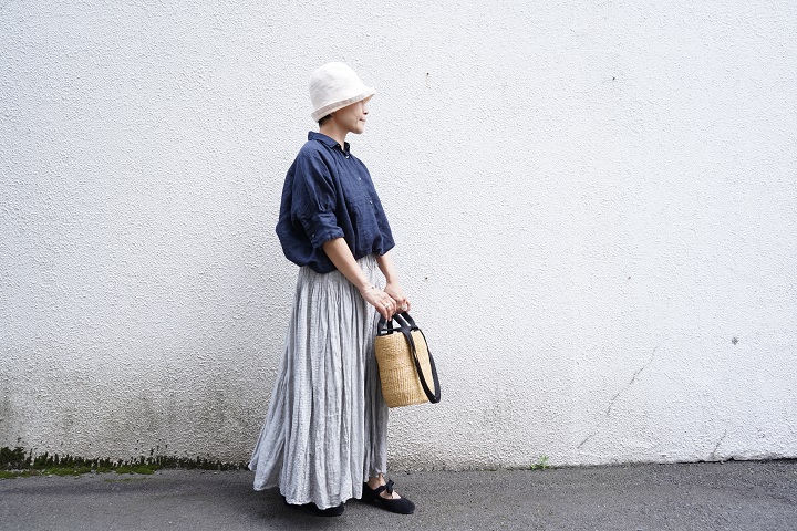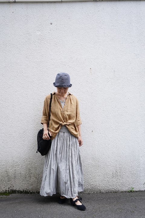 maison de soilの手染めスカートにタックイン。異素材感の際立つ