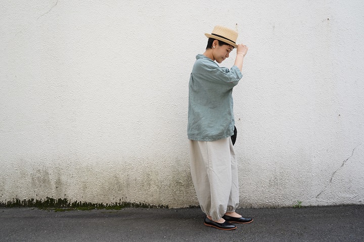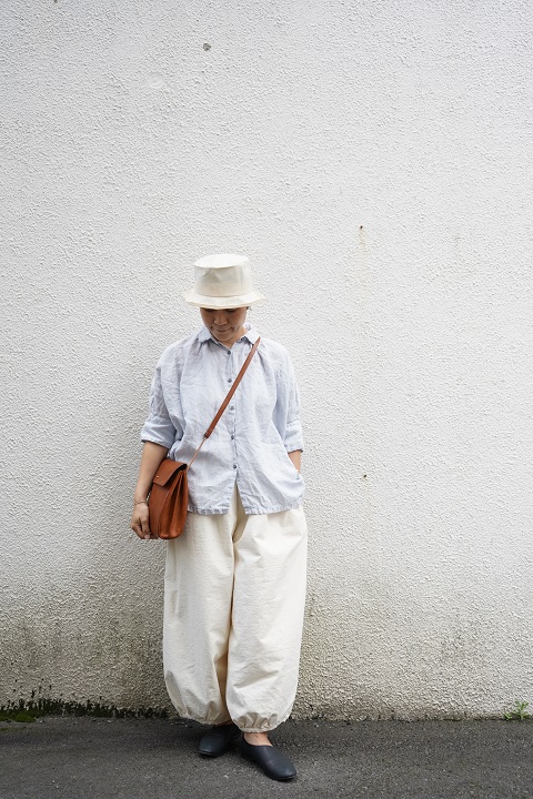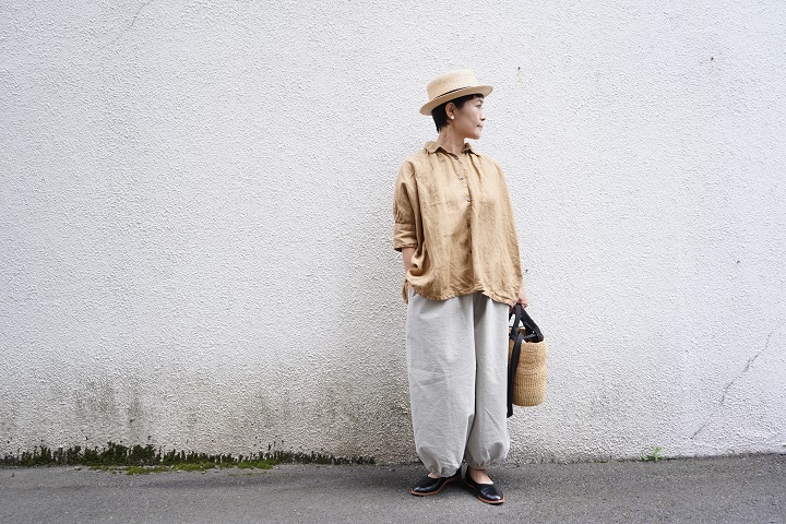 襟付きのシャツとパンツですので、少しメンズライクな印象も