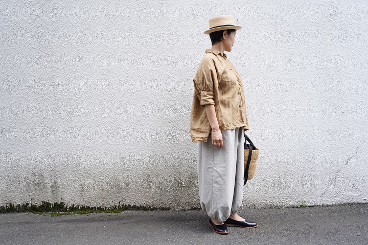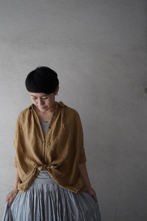 このバランスも、シャツとブラウスの中間をいってとても素敵です。