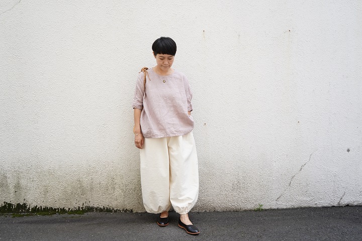 ふんわりパンツもブラウスも、風の通りがよく涼しいのです。