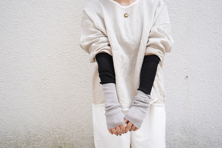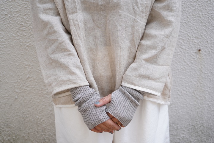 silk100% の筒型のニットで、腕をスッと入れただけで、