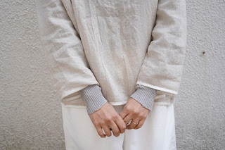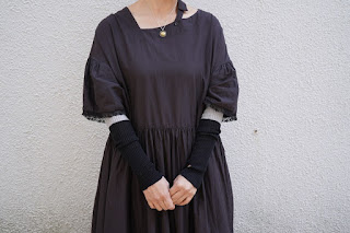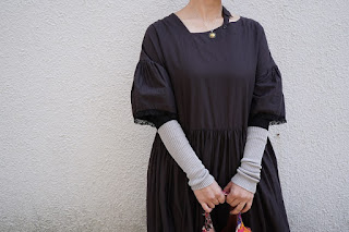 少し袖口をたるませて、肘のあたりで黒をチラリ。
