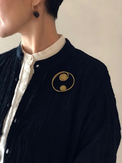 ピンブローチとブレスレットもよく見ると使用していますよ。