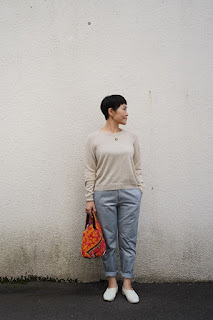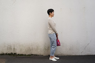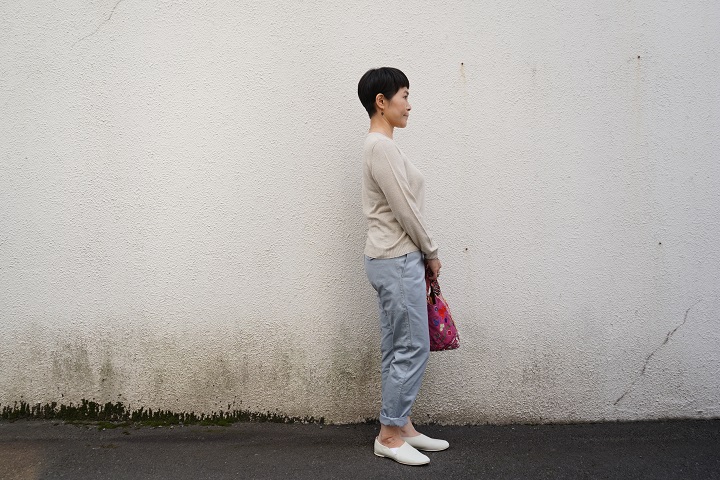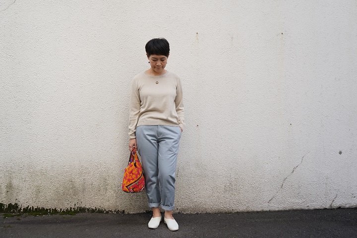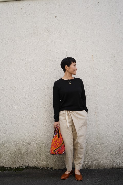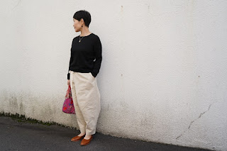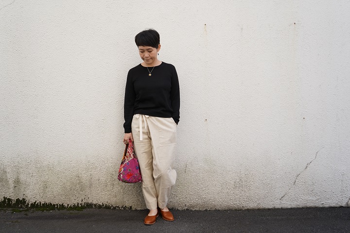 シンプルなトップスは、自分のそんなワードローブを見習って、
