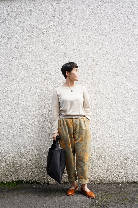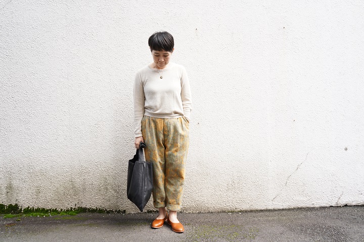テーパースリムパンツはゴーシュのカツラギ素材。