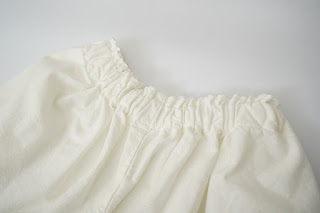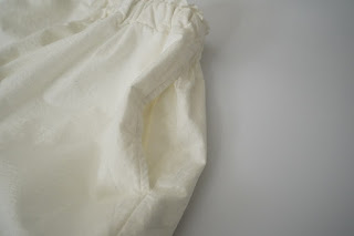 ウェストはひもなしのやや太めのゴムシャーリング。