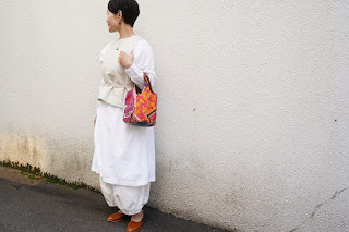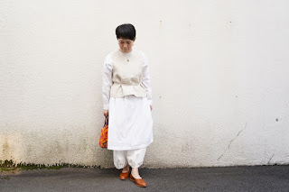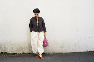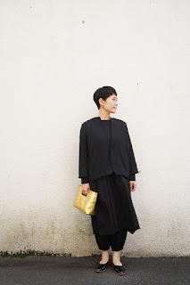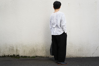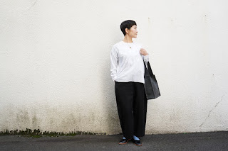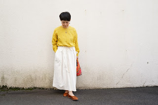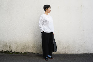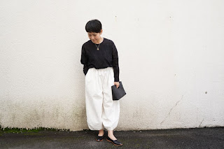 こちらはシンプルにふんわりパンツのキナリに合わせて。