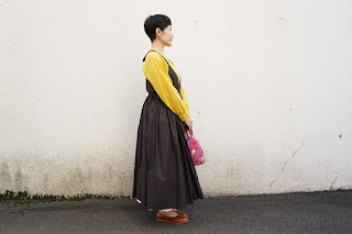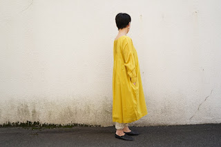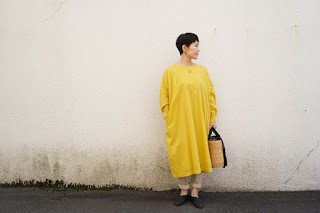 イエローのワンピースは説明不要なシンプルスタイルに。