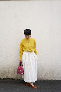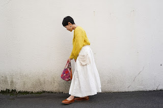 スカートは、先日ご紹介したGASAのマクラメパンツの