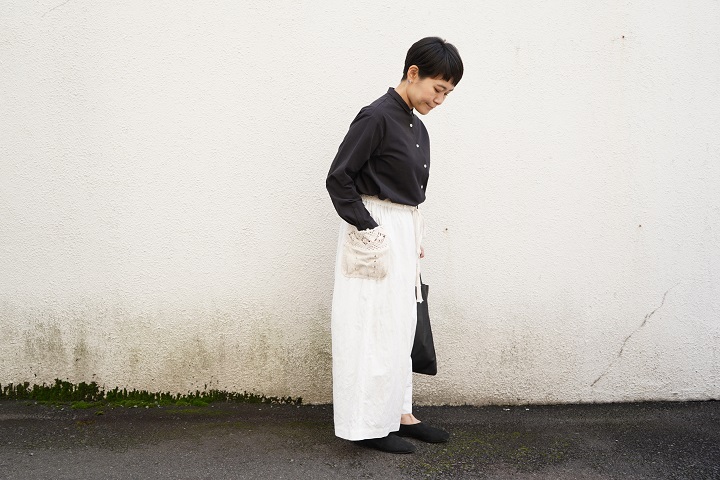 袴のようにも見える豪快なワイドパンツは、
