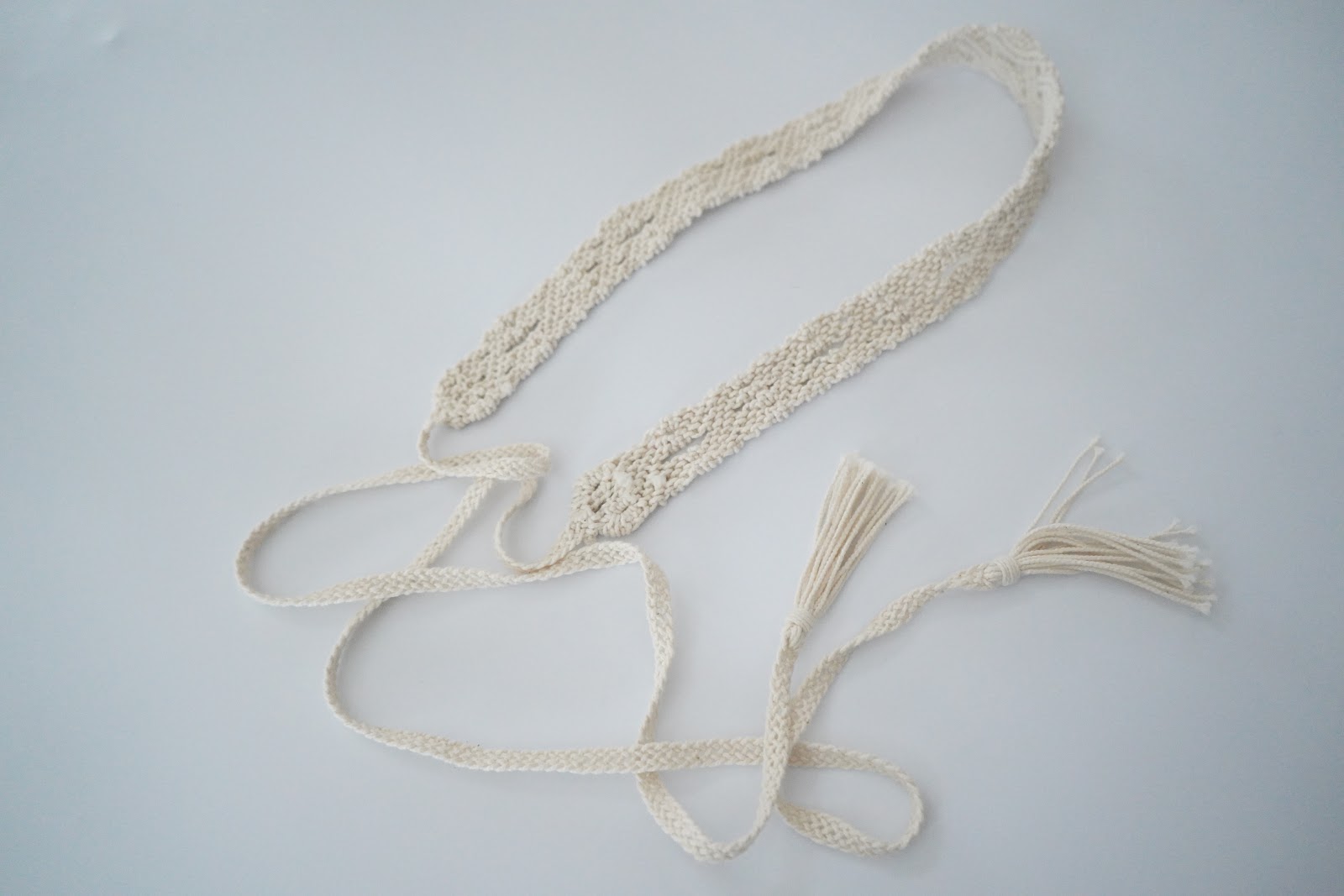 付属品となるコットンのマクラメ編みのベルトは、