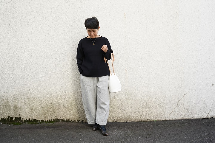 ワイドパンツだけでなく、細身のパンツやスカートにも素敵ですよ。