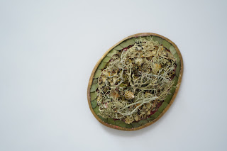 植物をそのまま敷き詰めた、独創性のある表現力の光る作品です。