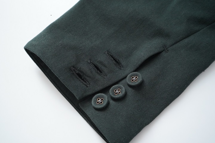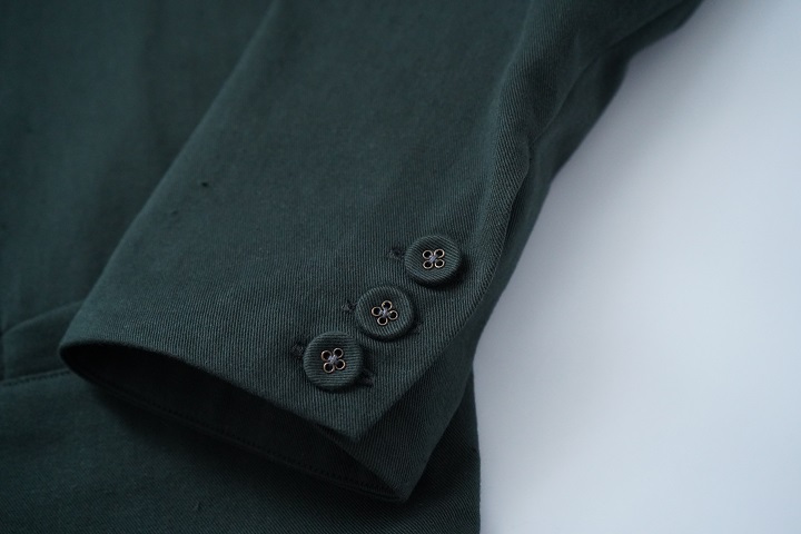 袖口のボタンは、テーラージャケットではなく、ワークジャケットや