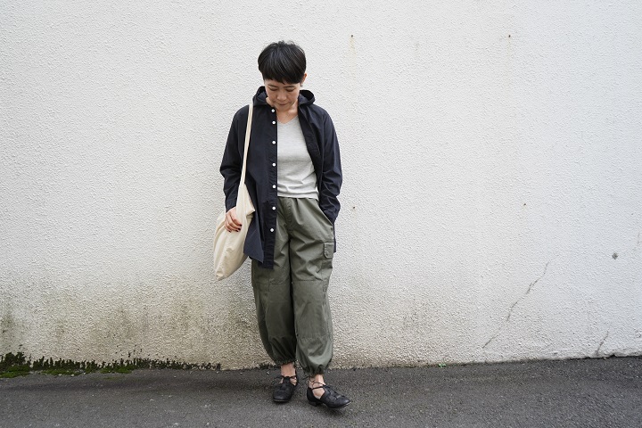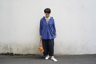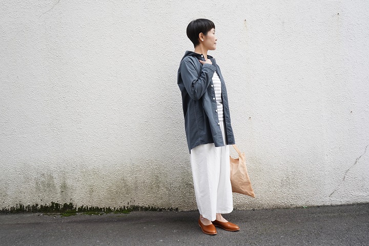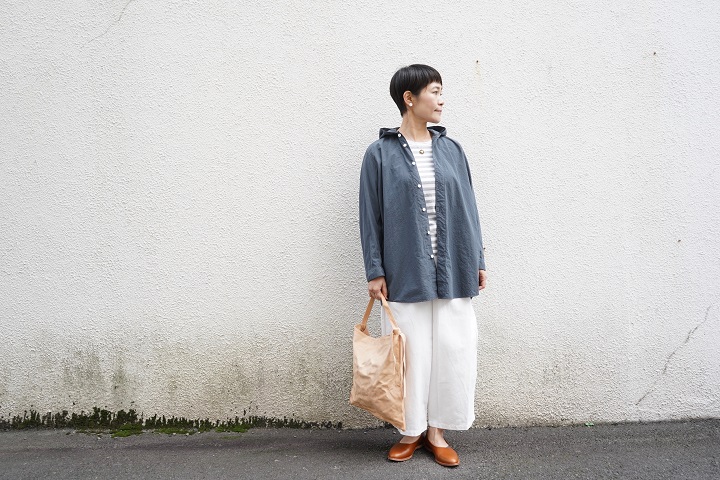 ボーダーに合わせて同系色で、まさにパーカー感覚で。
