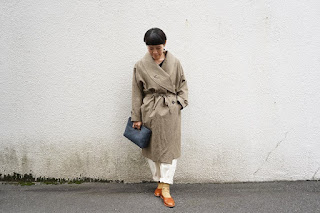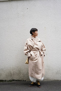 ベルトもウェストでキュッと結び、トレンチコートのよう。