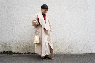 ボタンを一つだけ留めてゆったりマントのような感覚で