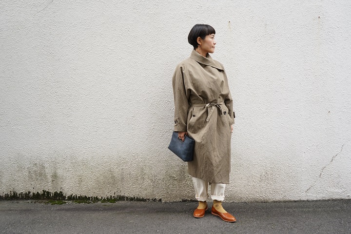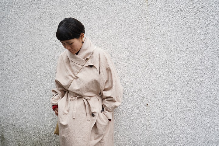 ベルトもウェストでキュッと結び、トレンチコートのよう。