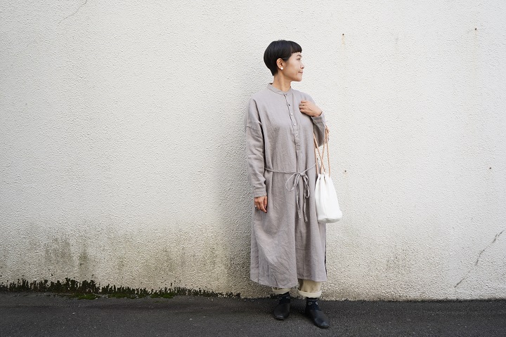 パンツがストーンと長いものをワンピースに合わせるときは、