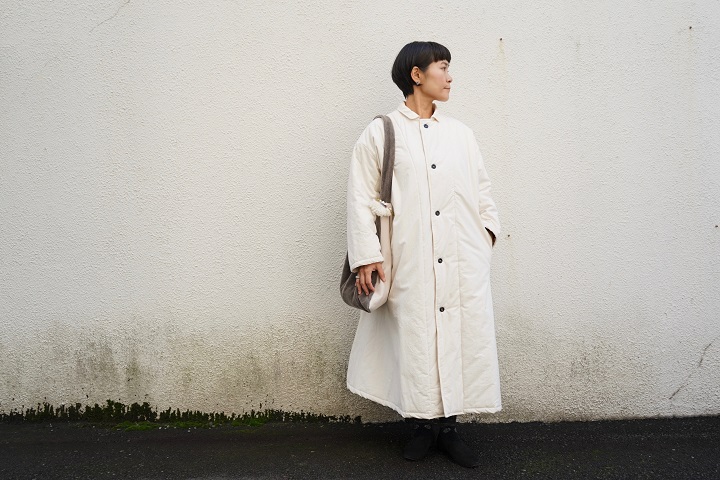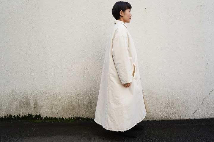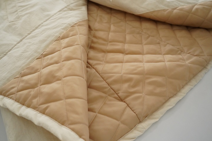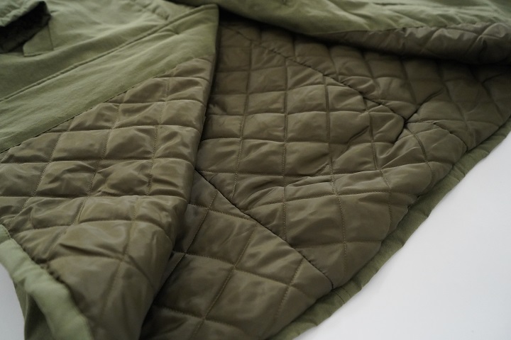 グラム数を少なめに、軽く仕立てたキルティングが、表地のコットンと