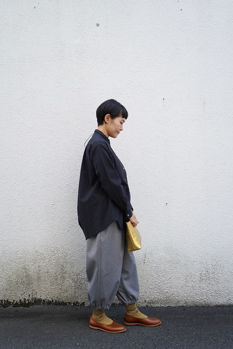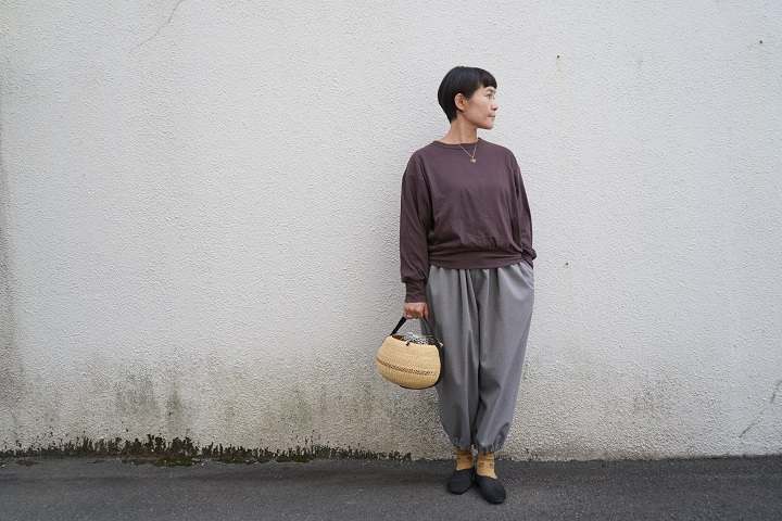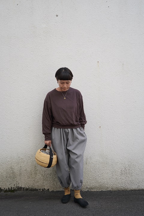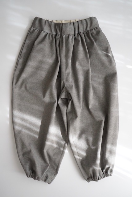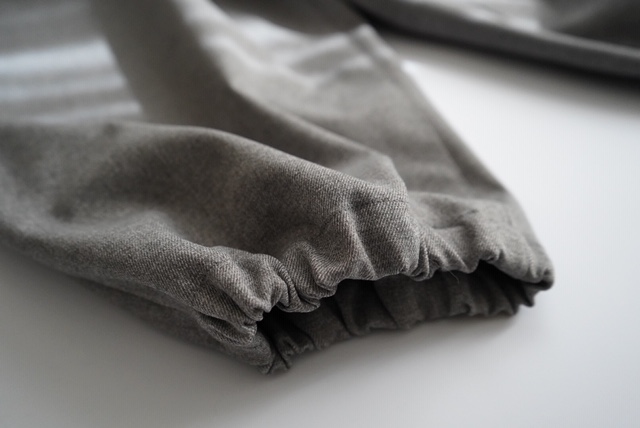 裾口にゴムが入り、シャーリングがかかるシンプルなデザイン。