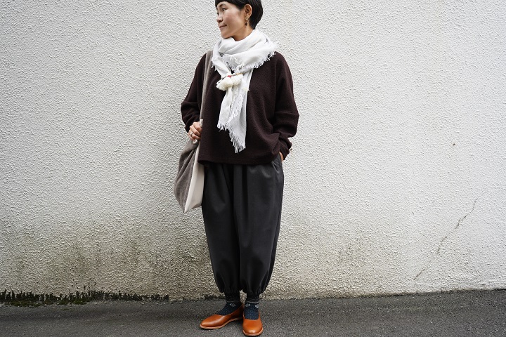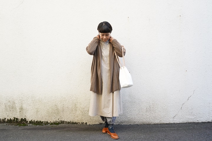 FACTORY のヤクのカーディガンを羽織って、この上から
